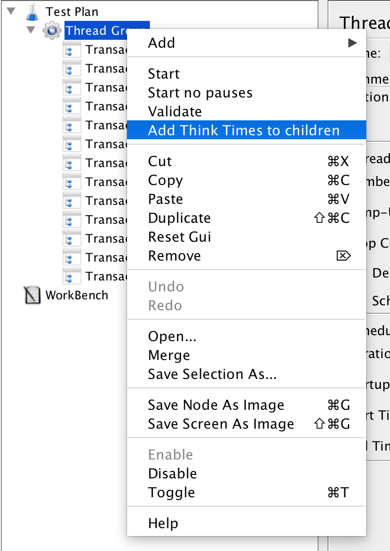 UbikLoadPack support (migrated from Bugzilla): Screenshots show how you proceed to add Think Times easily on Thread Groups and Controllers.