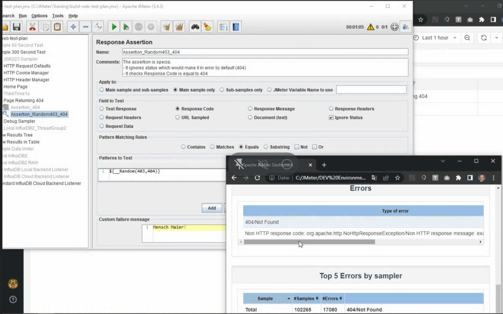 - has a Pattern to test: 403|404 and custom failure set to Mensch Maier!