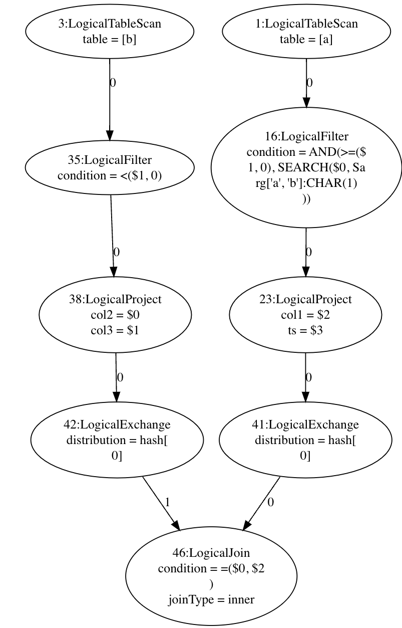 with the DOT format we can plot using any graphviz tool to generate execution plan like: