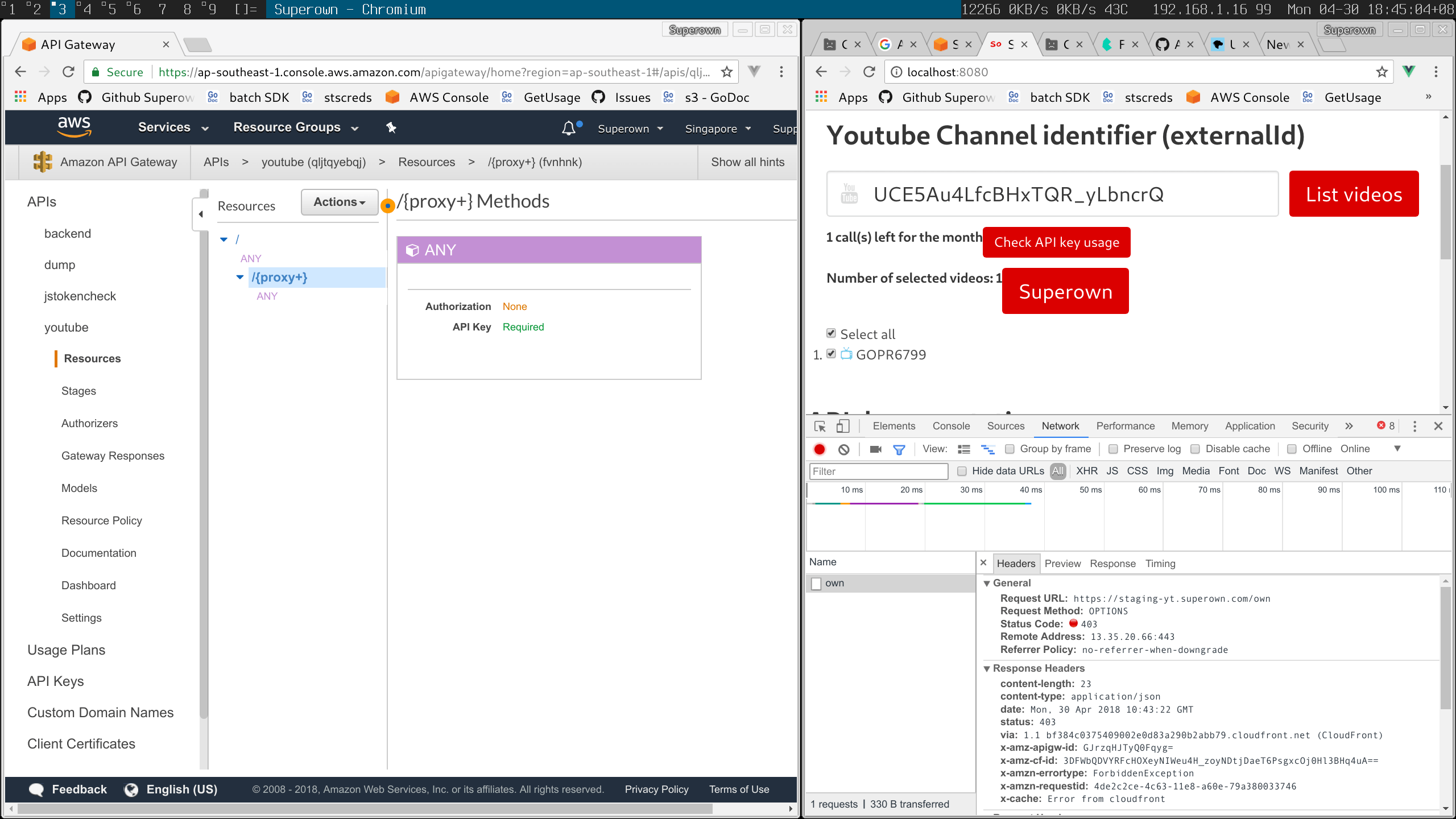 Currently the CORS stuff is configured in Up's proxy, this makes me wonder if they do some magic which isn't interoperable with CORS from an application other than API Gateway's CORS.
