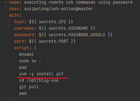第一次同步时安装git, 第二次就可以把 yum -y install git 去掉了