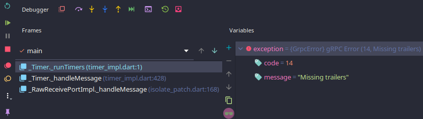 Unhandled exception: gRPC Error (14, Missing trailers)