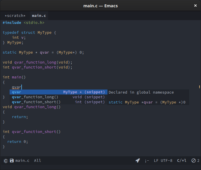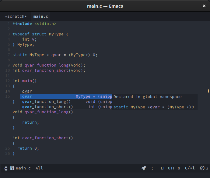 Enabling eglot, company-mode, eldoc-box-hover-at-point-mode and display-line-numbers-mode produces this result: