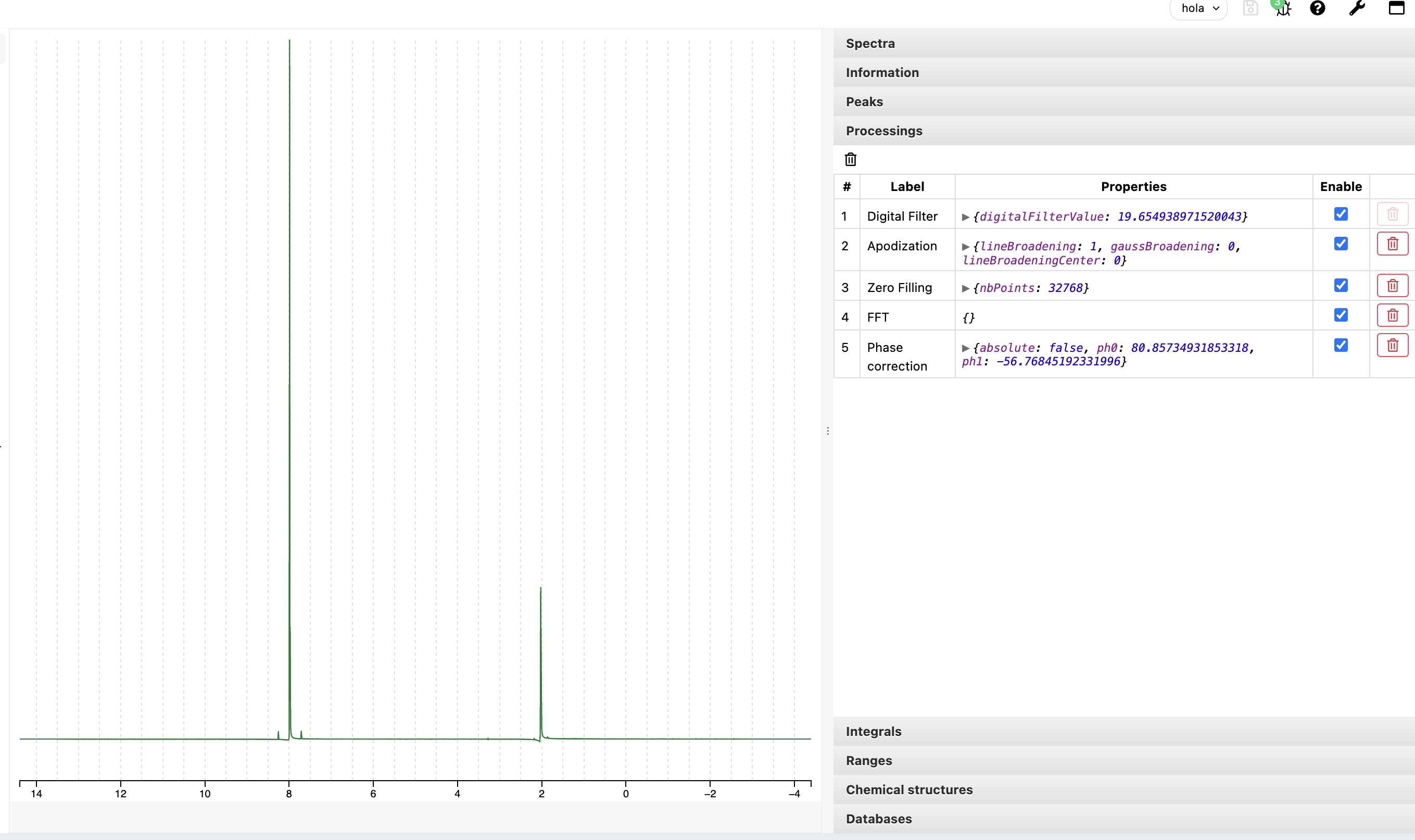 The digital filtering that we apply at the beginning move 19 points for the case of jeol data, the FID result is: