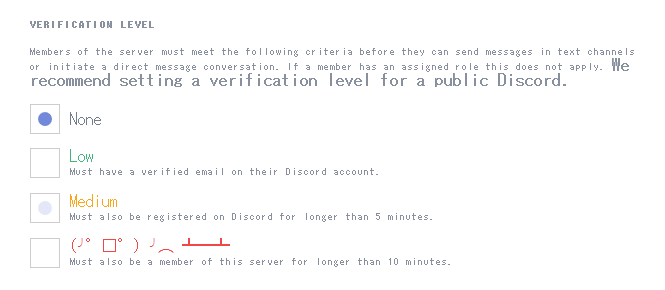 An interesting alternative is to have your name as your username+descriminator, and have all channels as voiced only/read only