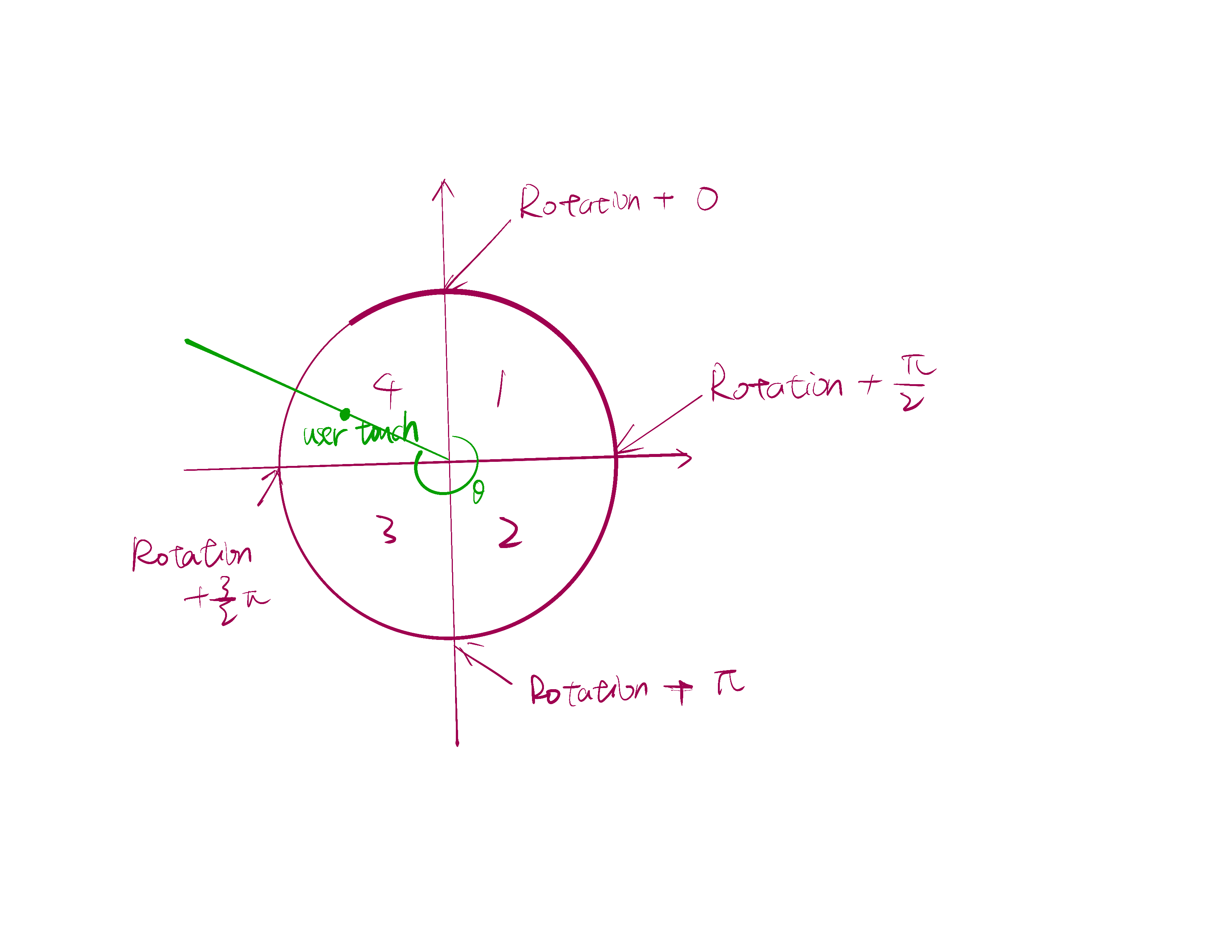 [rotation + 0 * 2pi / 4, rotation + 1 * 2pi / 4)