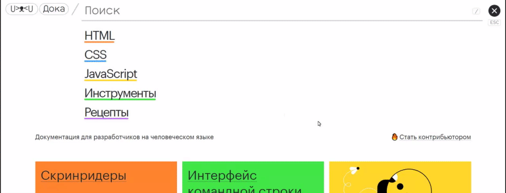 В текущей версии заходишь и сразу видишь, как на главной гугла, куда вбивать свой запрос и из каких категорий фронтенда могут выпасть результаты.