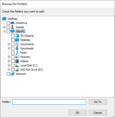 - a textbox to manually enter a folder path, and to be able to go to
