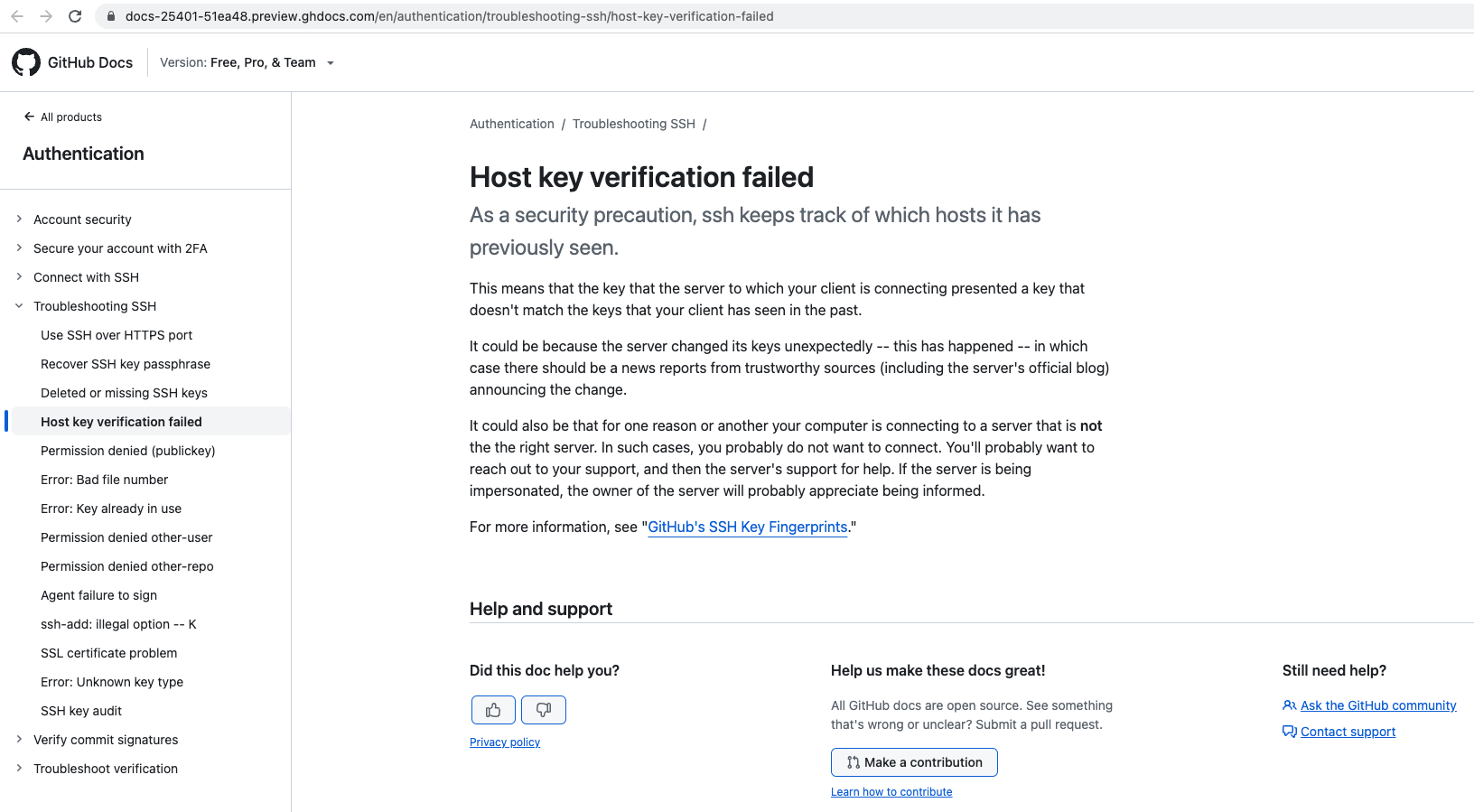 From: janyawat @.> Sent: Saturday, May 6, 2023 5:22 PM To: github/docs @.> Cc: Subscribed @.***> Subject: Re: [github/docs] Add Host key verification failed page (PR #25401)