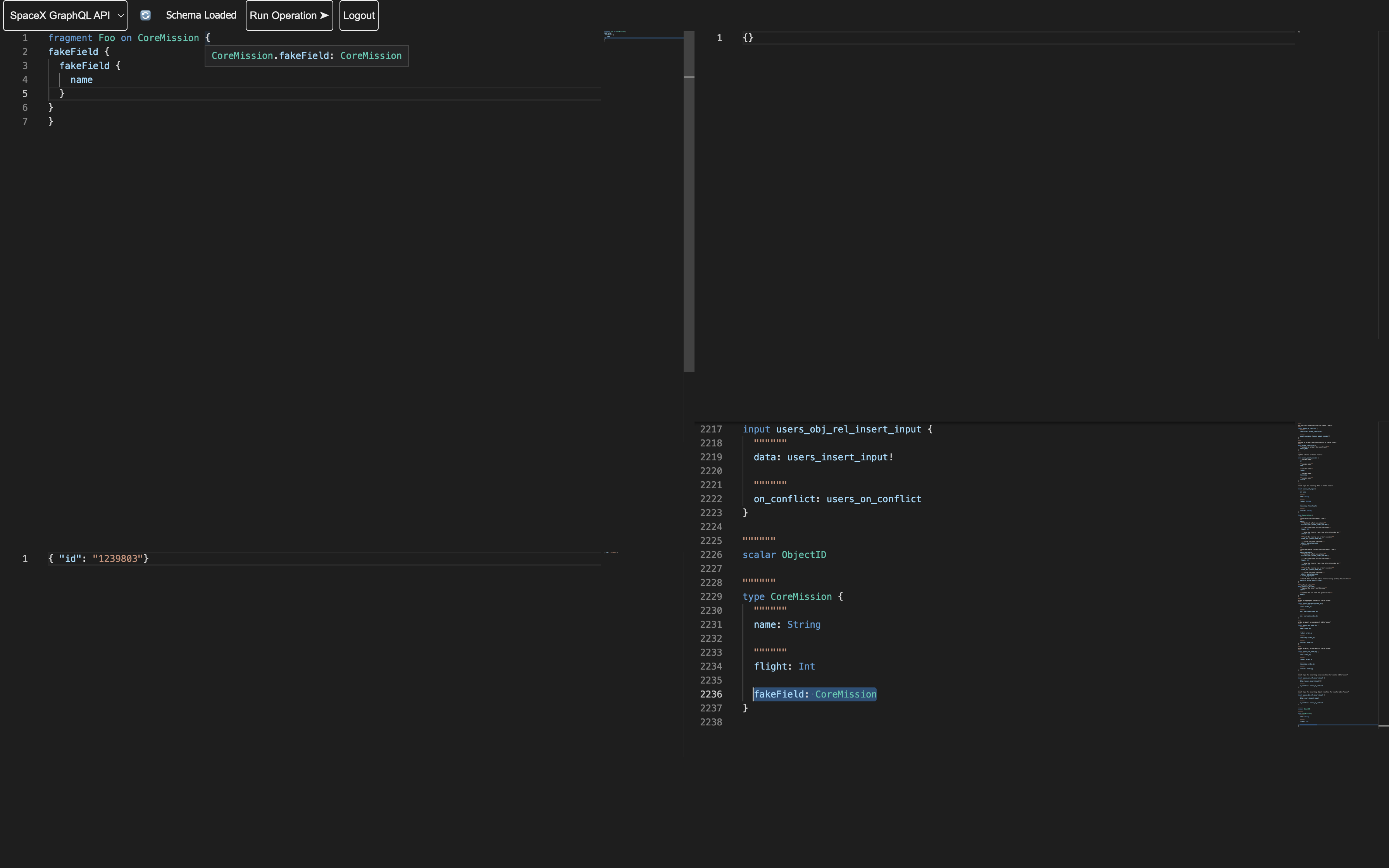 In this PR I've updated one of the examples (so I could play with this behavior) to have an editor for the SDL that gets loaded in, which is applied to the query editor upon editing (I've added fakeField in the screenshot):
