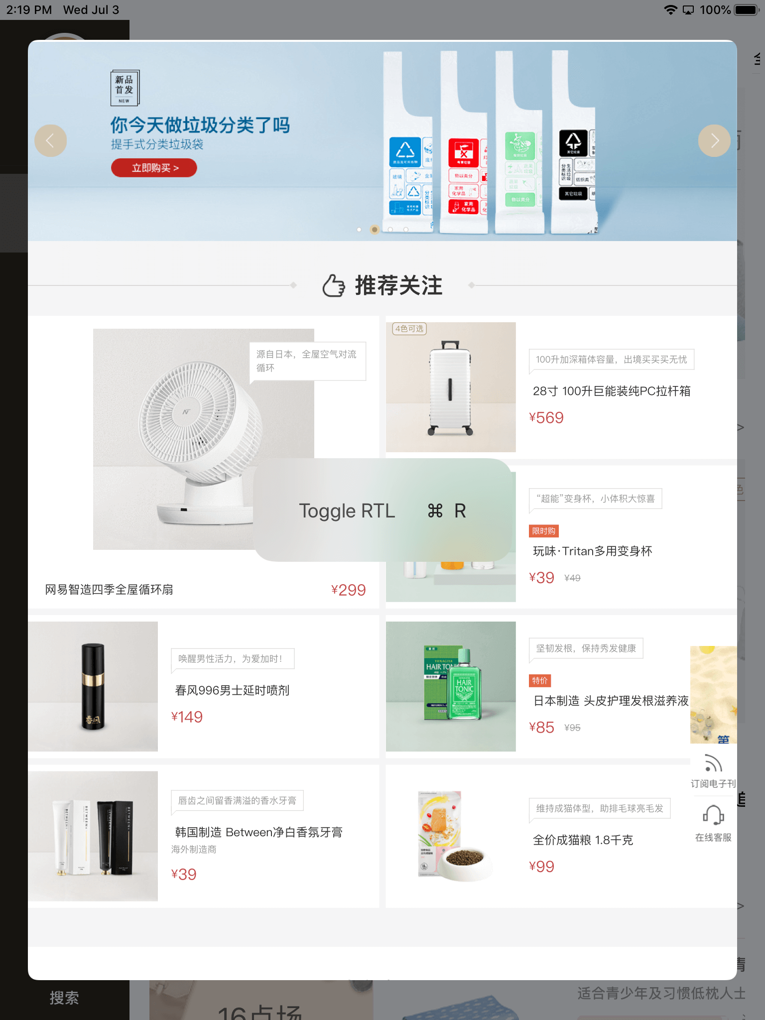The iPad version of '网易严选' iOS app, completly written in SwiftUI, and almost has full features like 网易严选's website. It is using real data from server to render Views, though is lacked server api to keep login state persistent.