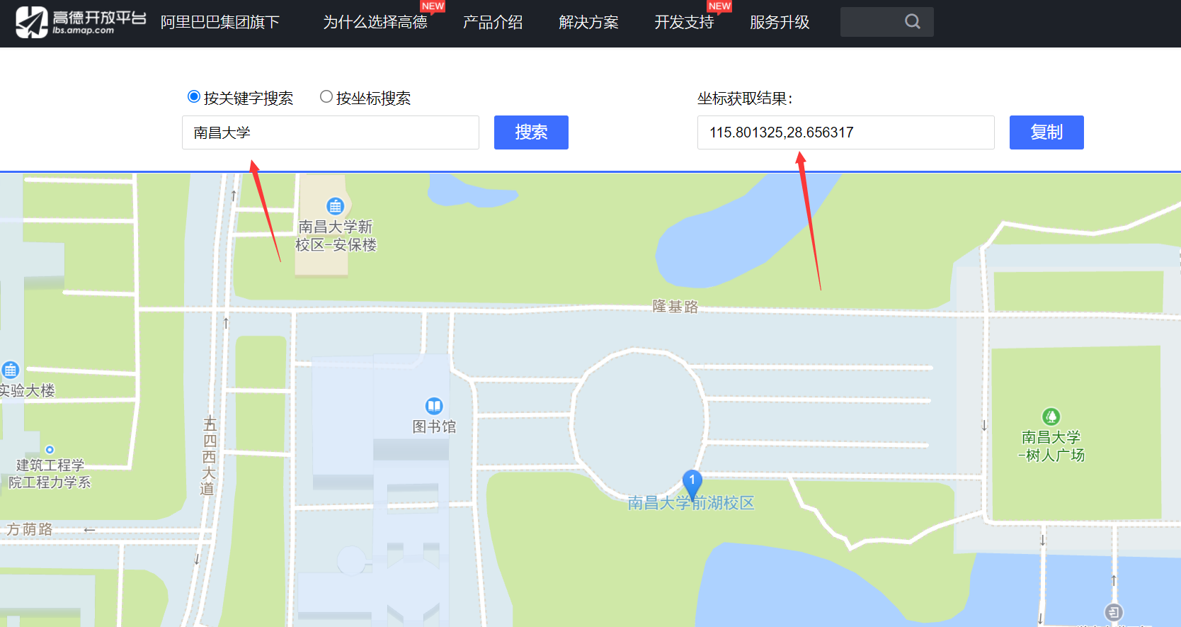 参数3 4 分别为经纬信息,查询方法为在高德坐标拾取器(传送门click)中输入地址获取打卡位置的经纬坐标