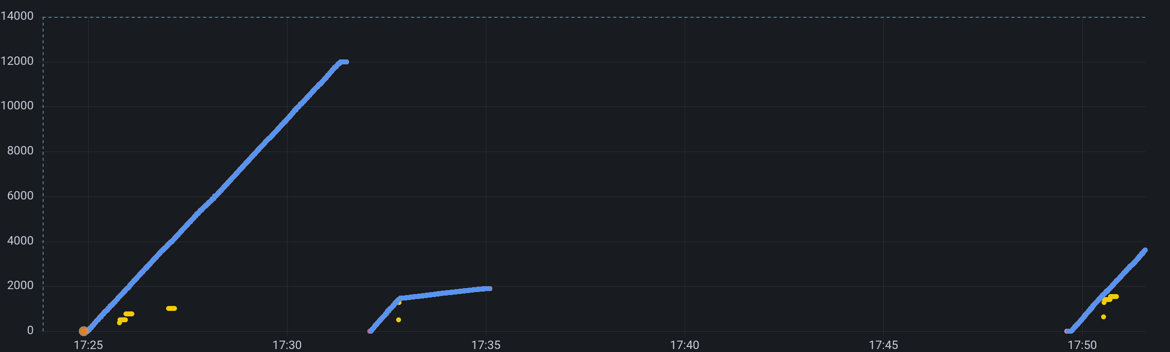 In the diagram, you can see the the newly accepted blocks by the seed node, each validator and the spammer. Everything but the spammer usually coincides, so it's basically...
