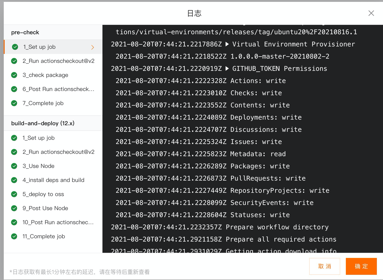可点击部署记录的「查看日志」查看部署的详细过程,并在部署发生错误时,精确定位学习错误情况。