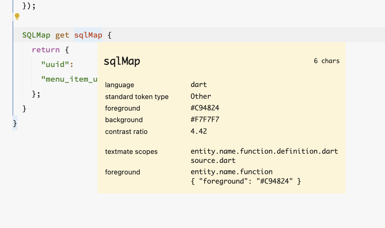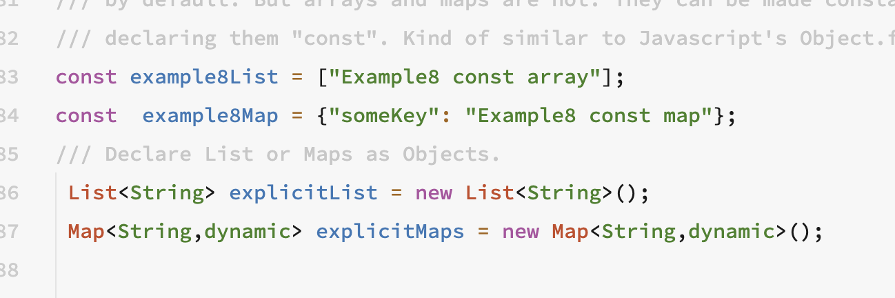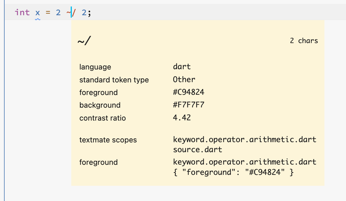 Every token is colorized. Now, I came across coding with Flutter that I realized the grammar has massive problems and that is not something that I liked: