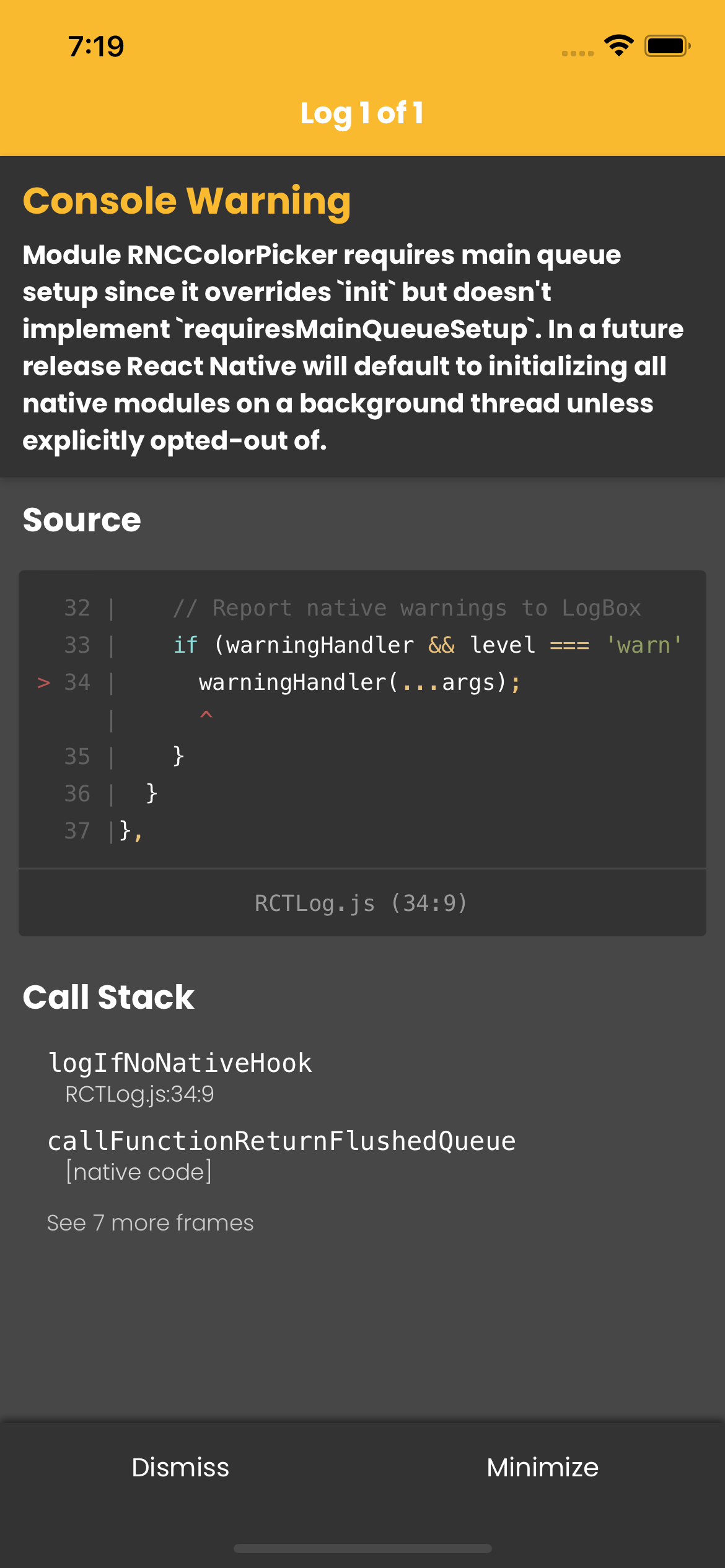 Module RNCColorPicker requires main queue setup since it overrides `init` but doesn't implement `requiresMainQueueSetup`.