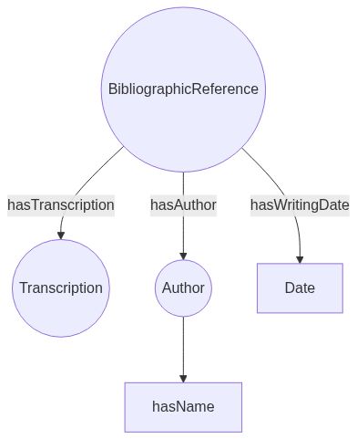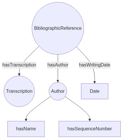 The modeling is not the issue, we have 2 other cases with doesn't involve this peculiar example. Here is another one: a Transcription to which point a full BibliographicReference with a hasWritingDate, the BibliographicReference itself is also linked to an Author.