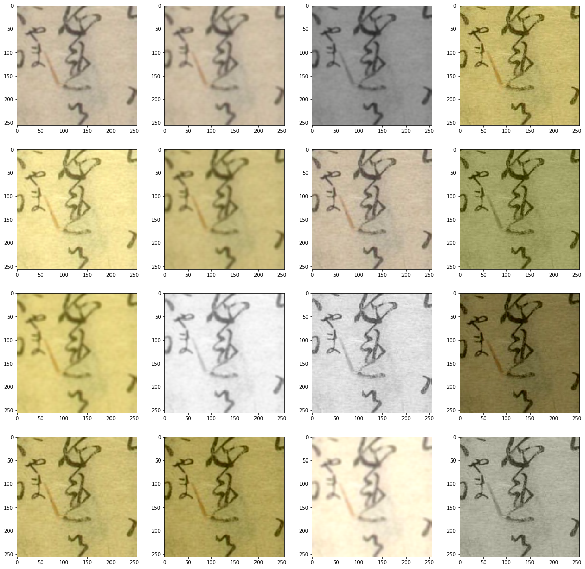 We are using standard augmentations from https://github.com/albu/albumentations/ library, including adjusting colors that helps simulate different paper styles