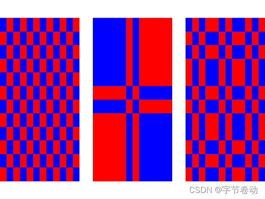 6. 对比 两个基本的由红、绿、蓝三种颜色绘制而成的三角形