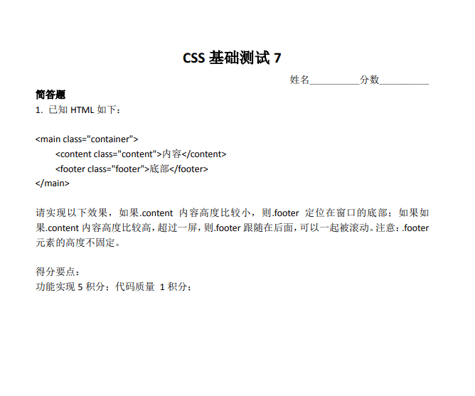 - 满分回答:.container { display: flex; flex-direction: column; min-height: 100vh; }footer { margin-top: auto;}