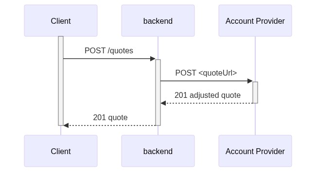 Correct, if we want to follow the quote creation model, in which the backend currently sends a "synchronous" request to the account provider via the quoteUrl: