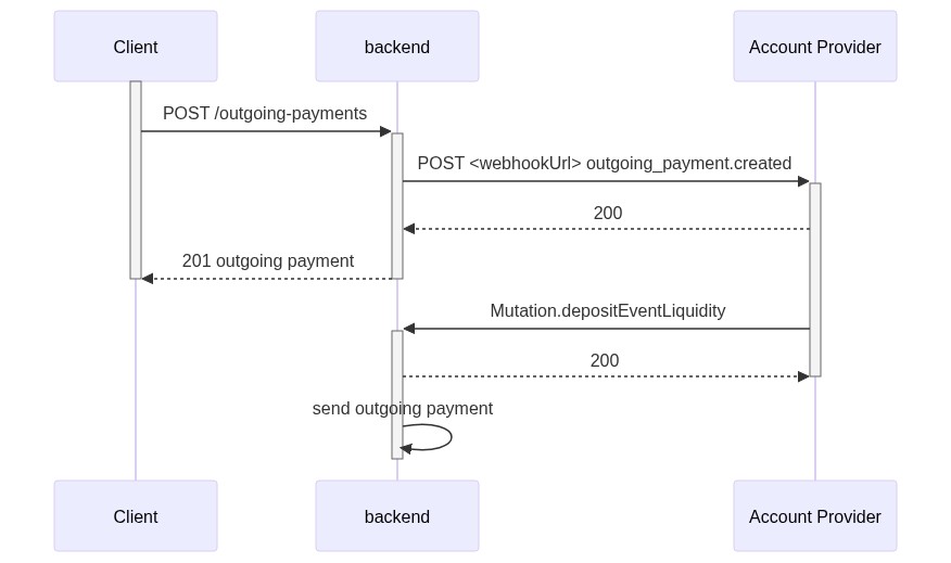 OTOH, the backend does not wait for account provider interaction when creating an outgoing payment: