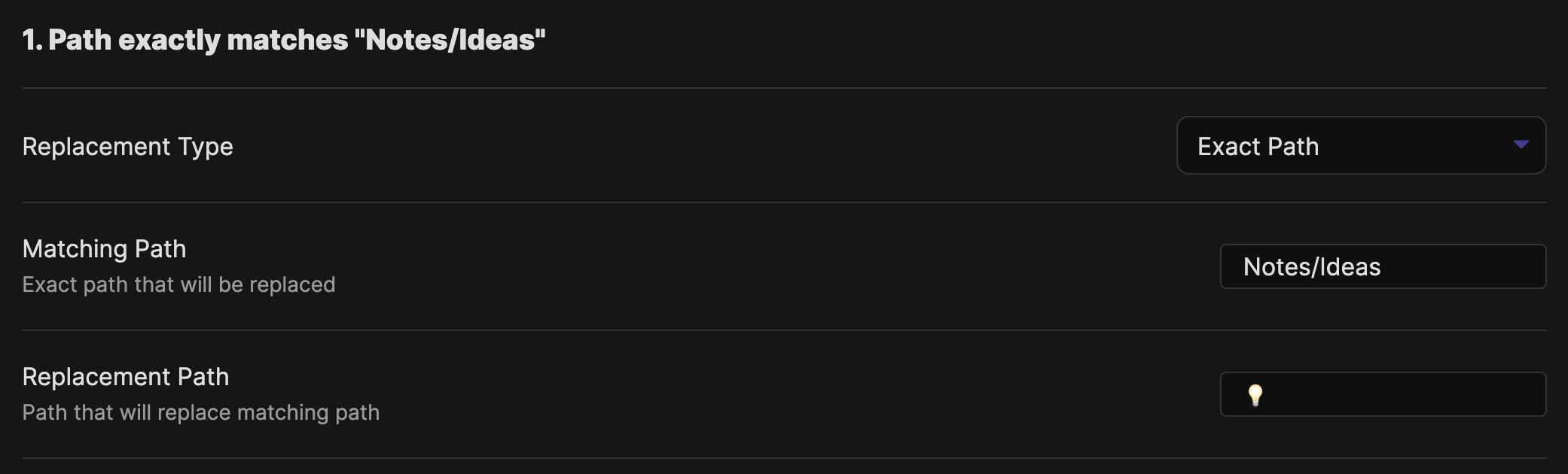 You can replace an exact match of the whole path with an alternate path. For example, here we replace "Notes/Ideas" with "💡".