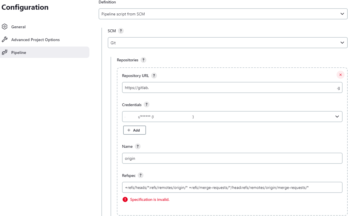 +refs/heads/*:refs/remotes/origin/* +refs/merge-requests/*/head:refs/remotes/origin/merge-requests/*However, I just get a "Specification is invalid" after entering these and cannot proceed.