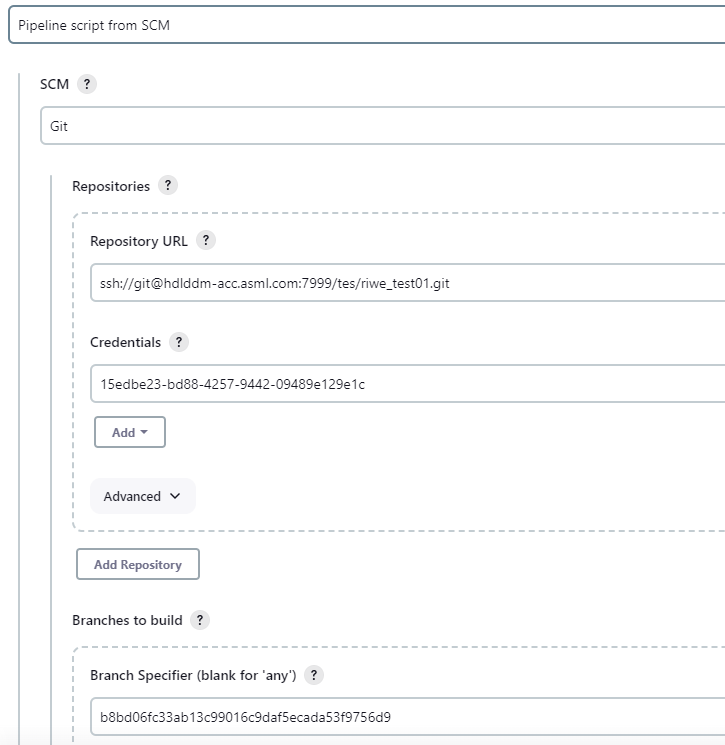 We always used freestyle projects and there we can specifiy the commitId as the branch specifier. This works. However when using a pipeline job, this does not work. The documentation says this should be possible, but it does not work: