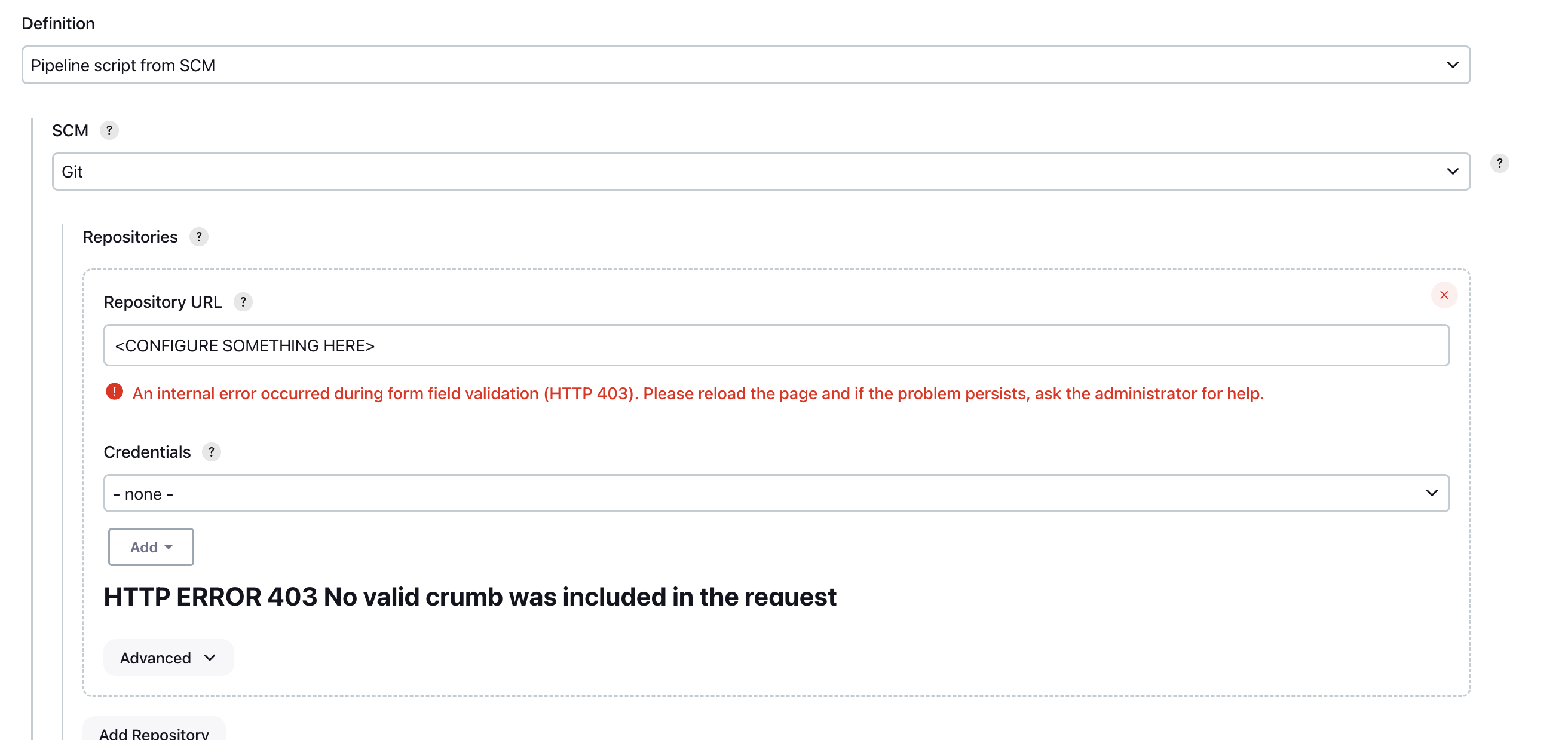 2. For the pipeline definition, configure it to use "Pipeline script from SCM" 3. Use the `Git` SCM and configure it to point to your repo
