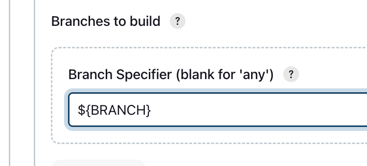 4. `Branches to build` -> `Branch Specifier` - should be set to `${BRANCH}` or whatever your parameter is called