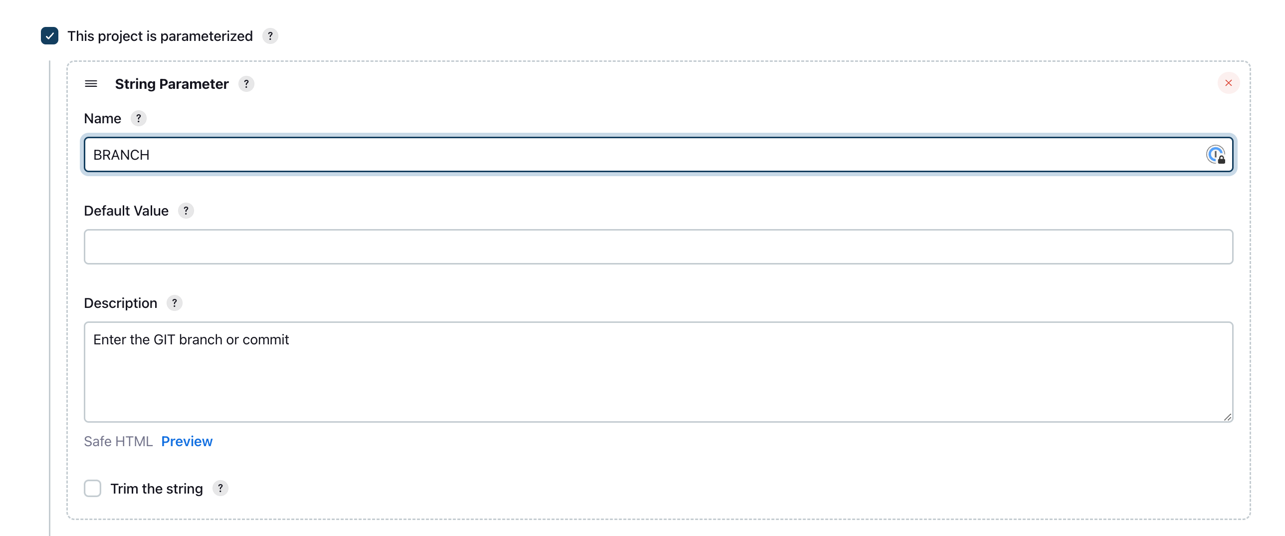 1. Configure a pipeline job with a string parameter called `BRANCH`