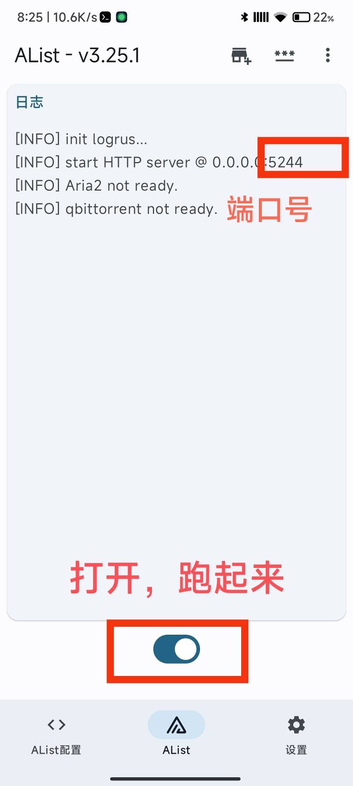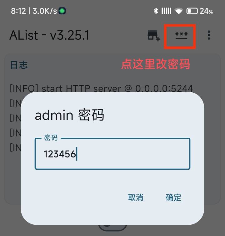 下载 AlistAndroid 并安装, 查看链接 注意要把 app 加入后台一直运行 打开 app,alist 配置项不用改,可以把密码改成好记的 123456