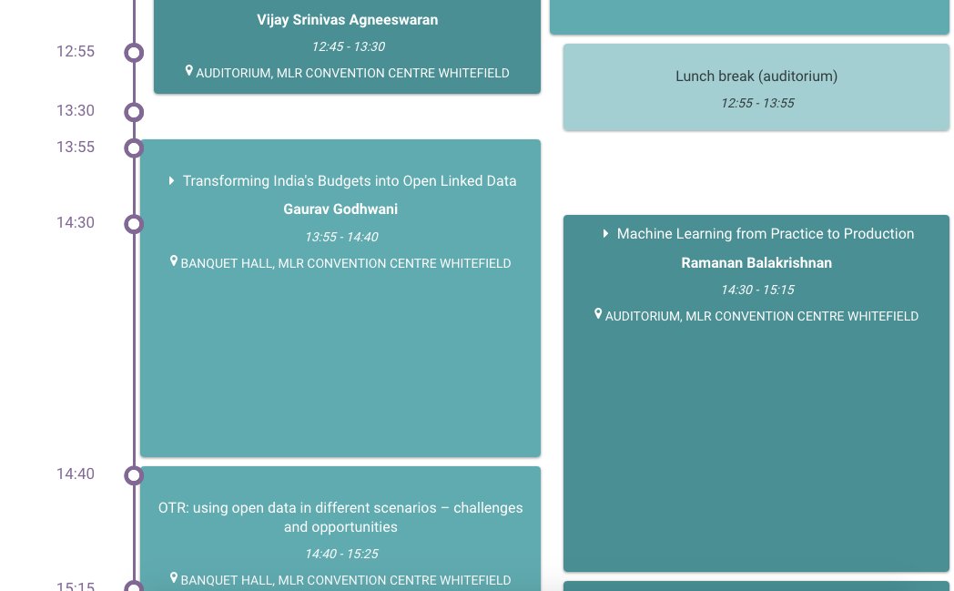 Reported here: [https://twitter.com/anandology/status/887978805507346432](https://twitter.com/anandology/status/887978805507346432) > @anandology: the time scale on the schedule page is very confusing. 10 mins is 3x longer than 35 mins.  Related: [hasgeek/android#3](https://github.com/hasgeek/android/issues/3) ## Possible solution Calculate...