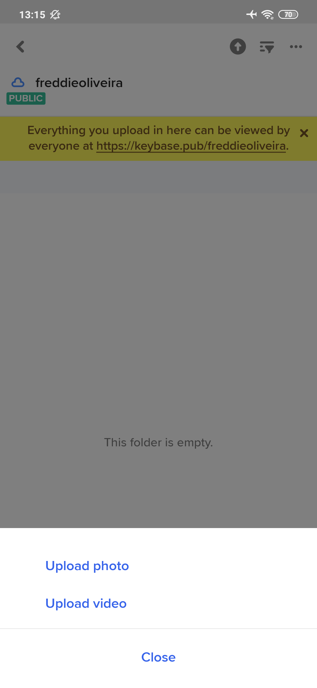 When using the Android app it's only possible to upload photos or videos to the the folders (private, public, team)
