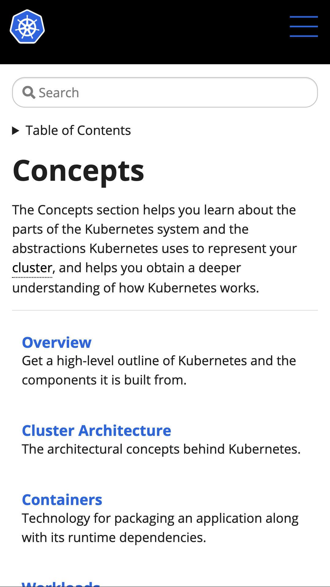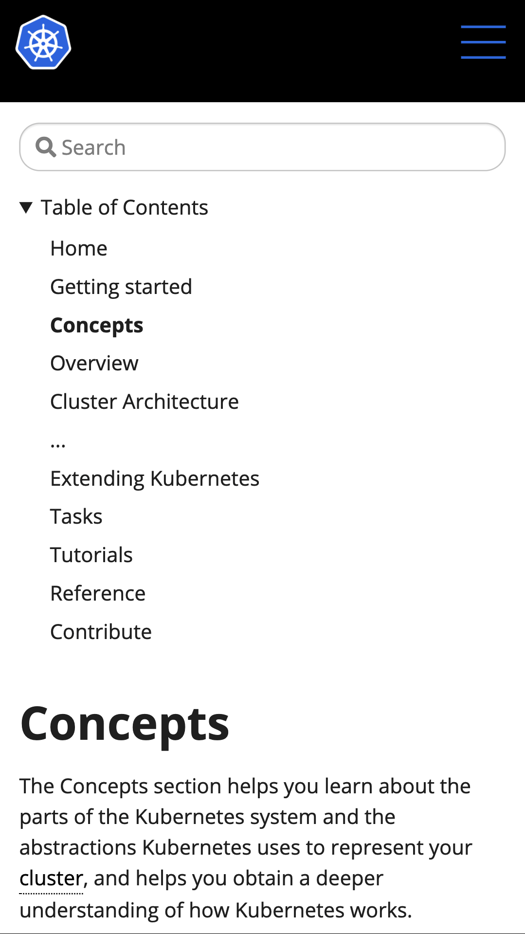 I believe two hamburger buttons confuses users on https://kubernetes.io/docs/home