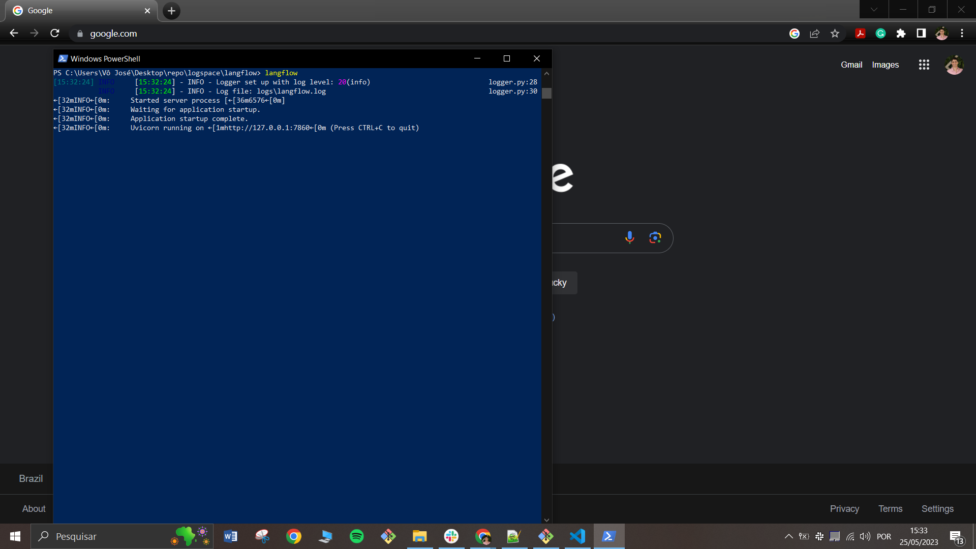 - Run langflow in the powershell