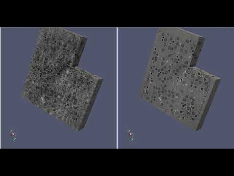 Video clips. Left: the original SIRT reconstruction with streaming projections; Right: the corresponding enhanced reconstruction using TomoGAN in real time.