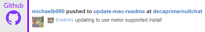 - I request a Github Webhook callback URI for #project in nullchat