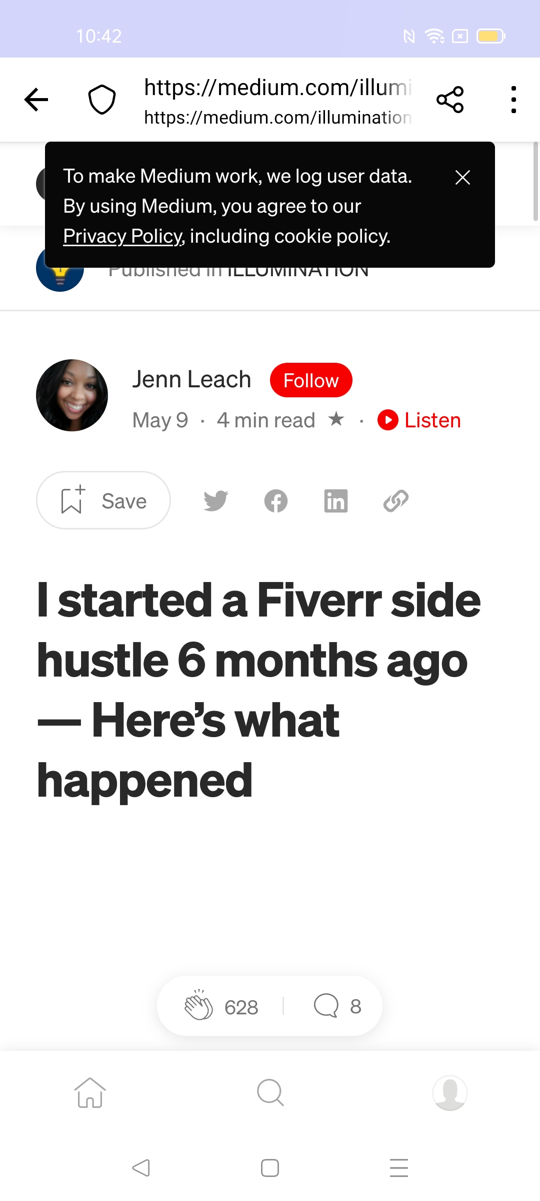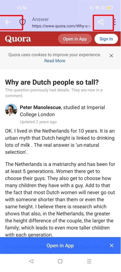 - Observe the back arrow, and share icon.