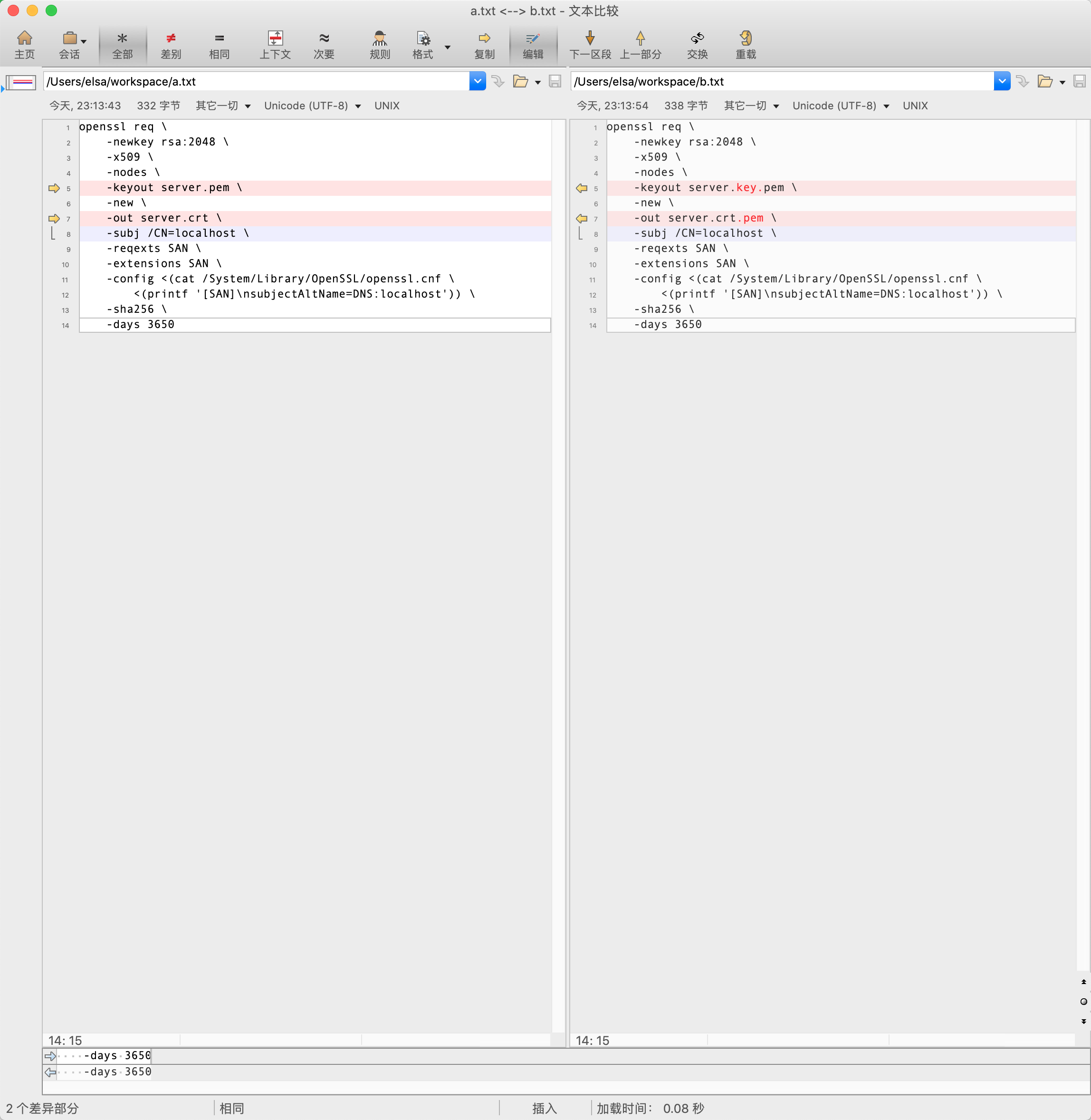 @hughfenghen 感谢,不过命令是没问题的。 我用beyond compare比较你给出的命令和文章中的命令,结果如下:  除了生成的证书名称不一样,其他的都一样。查了下: https://serverfault.com/questions/300842/openssl-keeps-giving-me-unknown-option-errors/300870 采纳的答案中说复制粘贴会导致命令出错,我复制文章中的命令执行,确实会出错,出错如下: ```bash ☁ workspace openssl req \ -newkey rsa:2048 \ -x509 \ -nodes \ -keyout server.key.pem \ -new \ -out server.crt.pem \ -subj...