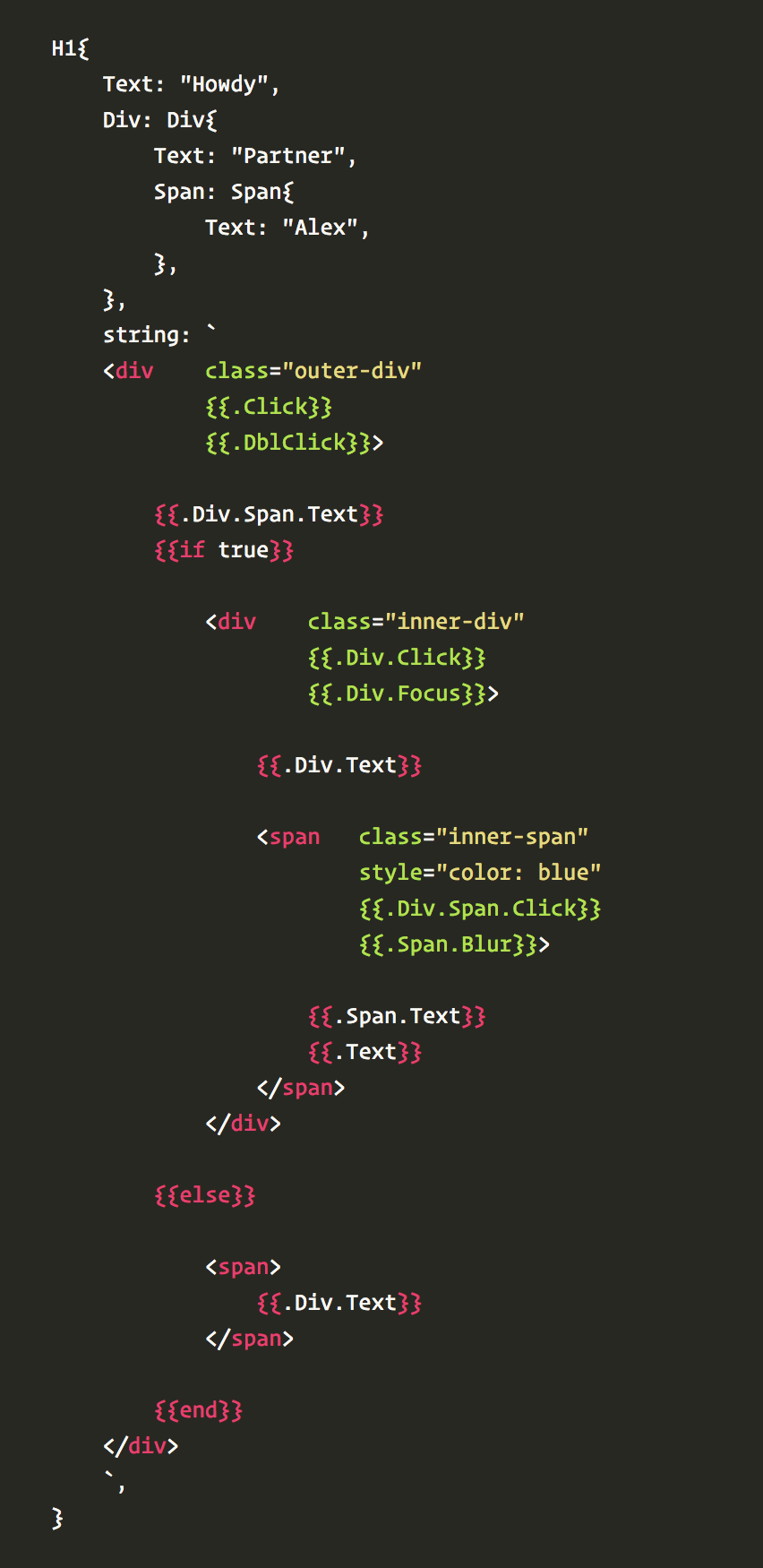 Give developers the option to embed raw string literal HTML templates in their components as an alternative to having the markup separate in another file (e.g. App.html).