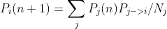为符号简洁起见, 我们将虚拟用户第 n 次浏览时访问各网页的几率合并为一个列向量 pn, 它的第 i 个分量为 pi(n), 并引进一个只与互联网结构有关的矩阵 H, 它的第 i 行 j 列的矩阵元为 Hij = pj→i/Nj, 则上述公式可以改写为: