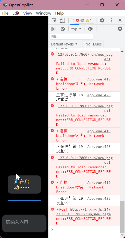 https://github.com/newfyu/OpenCopilot/releases/tag/v0.3.0 问题是新环境上创建log记录失败(地址不存在),已经修复了,可以重新下载试试