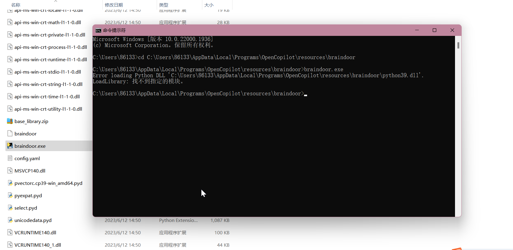 一直找不到机器能复现你这个问题,试了几个win10和win11都能运行,只确定了win7不行(不支持python3.9)。这个问题比较困惑,确定目录下那个python39.dll是不是存在。