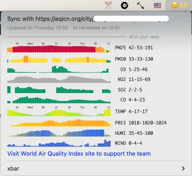 I'd like to improve the UI a little bit and then found out that the aqicn.org has some nice graphs and here is what it looks like now:  and...