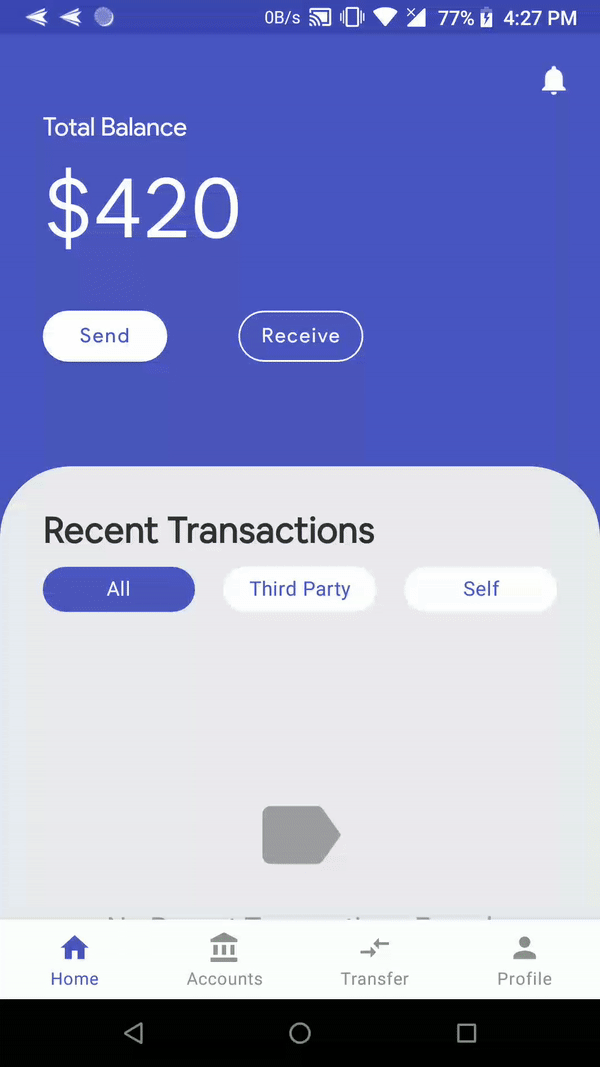 Also, I have not redesigned other screens such as Accounts Transfer etc. in this PR as I thought redesigning all the screens in one PR would contain too many changes and it might be difficult to review. This PR contains only the BottomNavigation and the home screen.