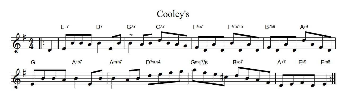 |:D2||"E-7"EBBA "D7"B2 EB|"G∆7"~B2 AB "C∆7"dBAG|"F#ø7"FDAD "F#m7b5"BDAD|"B7b9"FDAD "Ab9"dAFD|