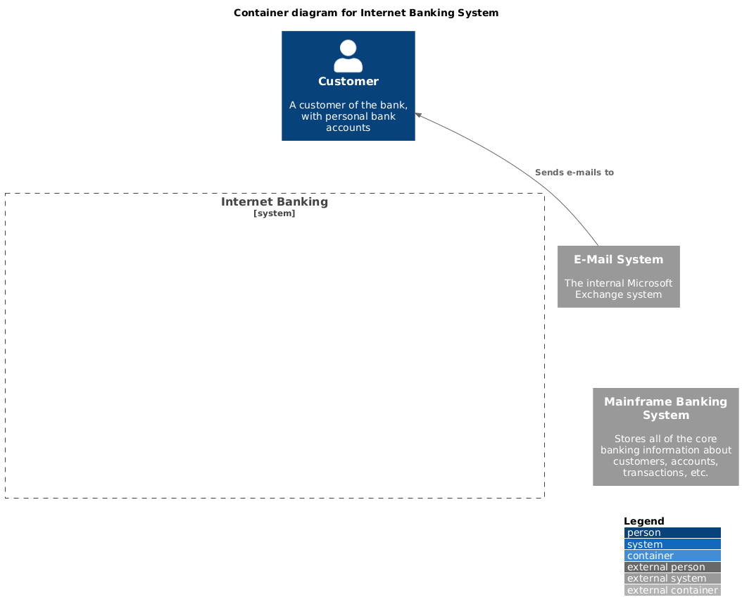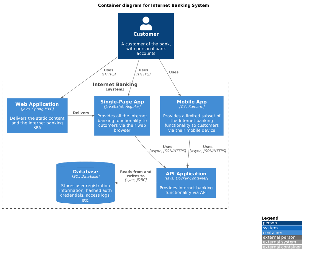 To give you an idea, using the Container diagram for Internet Banking System as example.