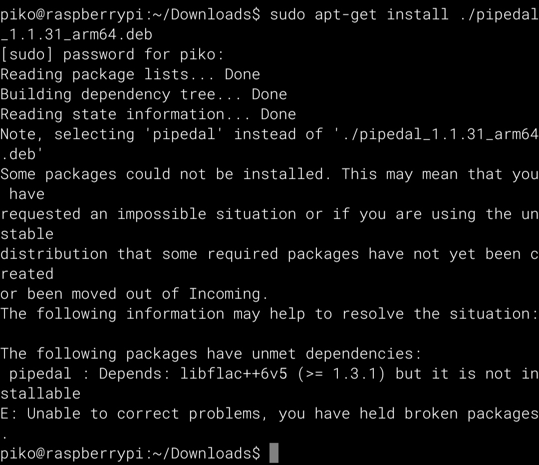 But now I can't even install PiPedal. It throws an error related to dependencies (libflac++6v5).